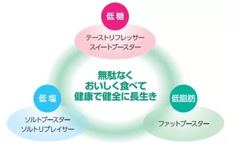 借助其快速吸收优势、强大的自由基清除能力,帮助产品提高运动表现,减少运动中的肌肉损伤,迅速恢复肌肉疲劳。2、Triple booster(トリプルブースター?)随着新冠疫情席卷全球,近两年消费者的健康意识得到极大提高,在产品选择上“健康”属性成为影响消费决策的重大因素之一。宣称“低糖”、“低盐”、“低脂”的食品逐渐受到消费者青睐。如何将好吃与健康“完美匹配”成为食品企业的又一个难题。日本长冈香料有限公司以“吃得好不浪费,过上健康生活”为设计理念,推出一款辅助“三低”产品感官表现力的香料产品